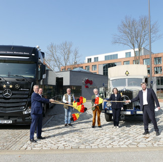EINBECK. Der PS.SPEICHER in Einbeck beherbergt viele Fahrzeuge mit bedeutender Geschichte. Jetzt kommt ein besonderes dazu: Das Fahrzeugwerk Bernard Krone GmbH & Co. KG aus Werlte im Emsland leiht Niedersachsens Oldtimermuseum bis auf weiteres den „WM-Liner“, mit dem die deutsche Fußballnationalmannschaft im Jahr 2014 den 4. deutschen Weltmeistertitel feierte. Dr. Stefan Binnewies, Vorstand der Bernard KRONE Holding SE & Co. KG, und Gero Schulze Isfort, Geschäftsführer der Krone Beteiligungs-GmbH übergaben das besondere Fahrzeug nun dem PS.SPEICHER.